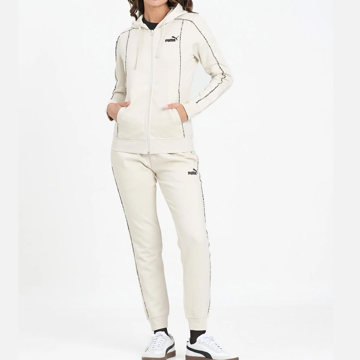 Tuta completa Puma in tonalità beige, perfetta per chi ricerca comfort e stile in ogni occasione. Realizzata con materiali di qualità, questa tuta offre una vestibilità moderna e versatile, ideale sia per il tempo libero che per l'attività sportiva leggera. Il design minimalista e la palette neutra la rendono facilmente abbinabile con altri capi del vostro guardaroba. Pratica e elegante, rappresenta la scelta consapevole di chi non vuole compromessi tra funzionalità e estetica.